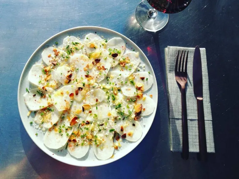 Restaurant Le 37 has two cosy dining rooms: one with a bar for sharing wine and tapas at bar tables, and the bistro-style dining room.