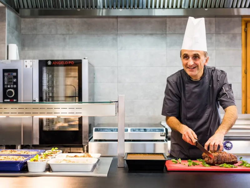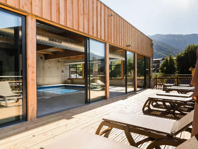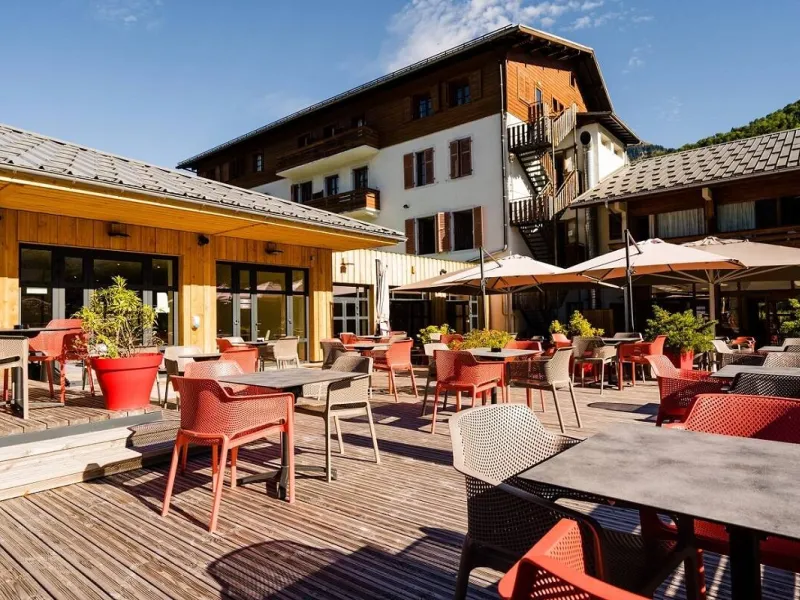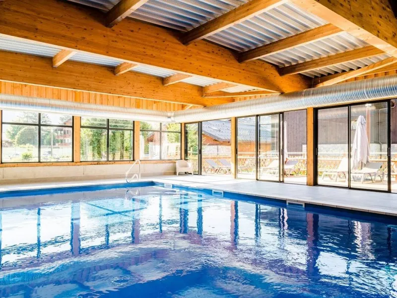 Family cooking to discover Savoyard specialties! Our restaurant, with its 2 panoramic rooms and its terrace open all year round, offers you tasty and balanced menus. Lunch and dinner served as a buffet or plated. Specialties: tartiflette, Savoyard fondue, Savoyard crust, crozets, white wine diots... Regional cheeses: Abondance, Tomme de Savoie, Reblochon... Homemade desserts and pastries. Wine included with meals, coffee and tea at lunchtime. Guide and driver meals offered.The Le Bérouze holiday village has 58 rooms served by elevator: singles, doubles, triples and family rooms (up to 5 beds). Private bathroom (shower, sink, hairdryer, WC). TV and free WiFi. Beds equipped with duvets and made on arrival, bathroom linen provided. 4 double rooms for people with reduced mobility. Numerous convivial spaces: bar, lounges, performance hall. Covered and heated swimming pool. Large outdoor terrace with views of the mountains. At your service: reception open 7 days a week, private car and bus parking, shoe/bike/ski storage, laundry room, board games, billiards, ping-pong table, table football, etc. Ski bus stop located in front of the village holidays (shuttles every 15 minutes in winter).