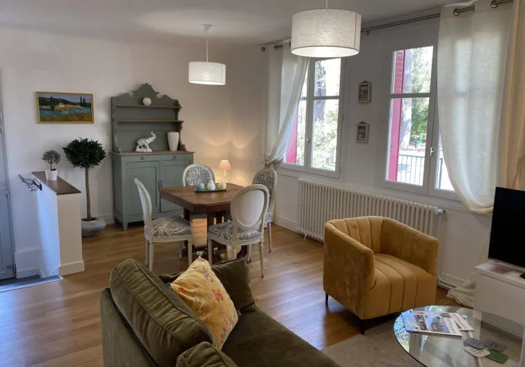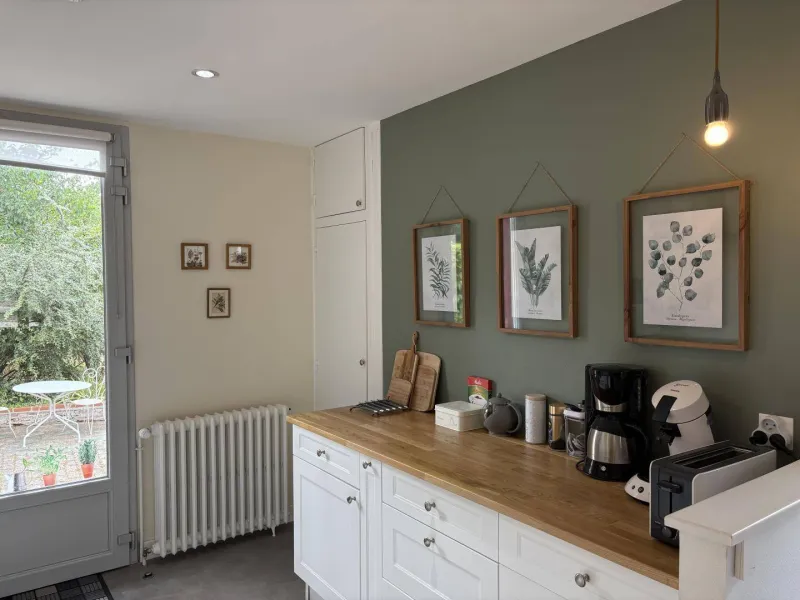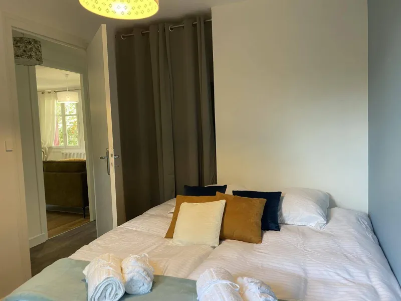 In a residential area, the "Maison de ma Tante" is ideally located to take advantage of the city and its tourist attractions, easily accessible on foot (1 km) or by bus (stop 500 meters away). The shops of the village of Yzeure are 500 meters away. It faces the Gloriette park and its century-old trees. On the courtyard side, you will enjoy a charming rustic and nicely planted garden, which gives it a country air. The house is very suitable for hosting 3 people and can accommodate up to 4 people for a short stay. Located on the raised ground floor, it is composed of a functional and well-equipped kitchen, overlooking the bright living room with its view of the park. You have a dining area and a cozy lounge. The bedroom on the park side is furnished with a large 160 cm bed. The office bedroom overlooking the garden side has a 90 cm bed and an extra 80 cm bed. extra-flat shower. The toilets are independent. For your leisure and outings, here are some suggestions: The National Center for Stage Costume 4 km away, the LE PAL zoo and amusement park 30 minutes (25 km) by car, MOULINS "Ville d'Art et d'Histoire " 2km away, the city of VICHY classified as "Great City of Water in Europe" as a UNESCO World Heritage Site 57 km away. Possibility to rent traditional and electrically assisted bicycles in the town center of Moulins. Non-smoking houseBENEFITS OF THE GITE: Sheets provided and beds made on arrival, bathroom and household linen included, heating and electricity included.