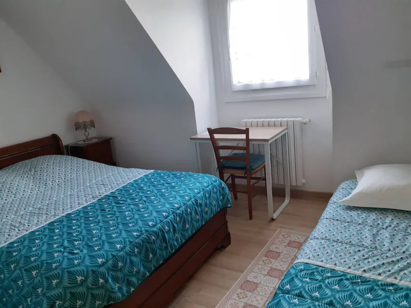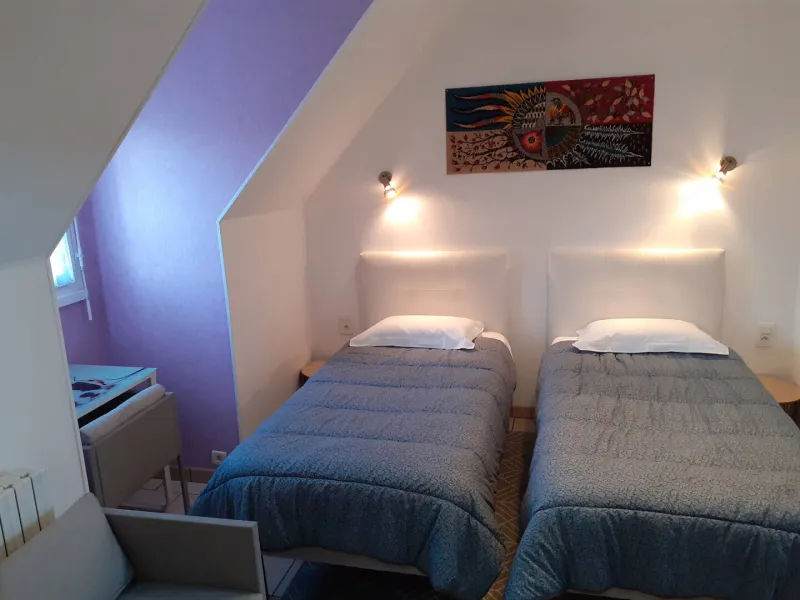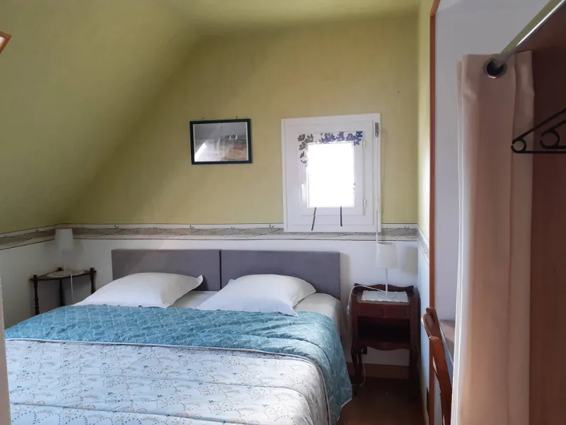 - Bedroom 1: 1 double bed 180 (80 €) separable into 2 single beds 90 (90 €), with shower and washbasin in the bedroom, wc on the landing.
