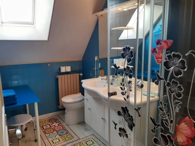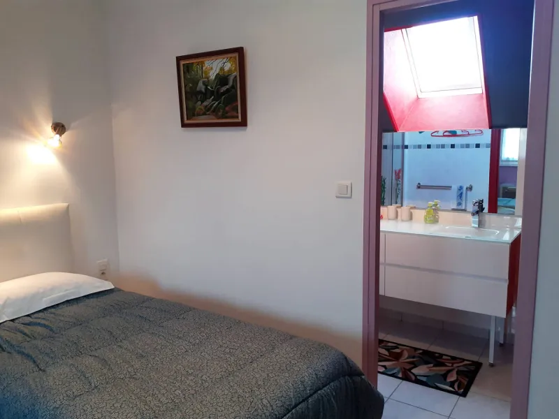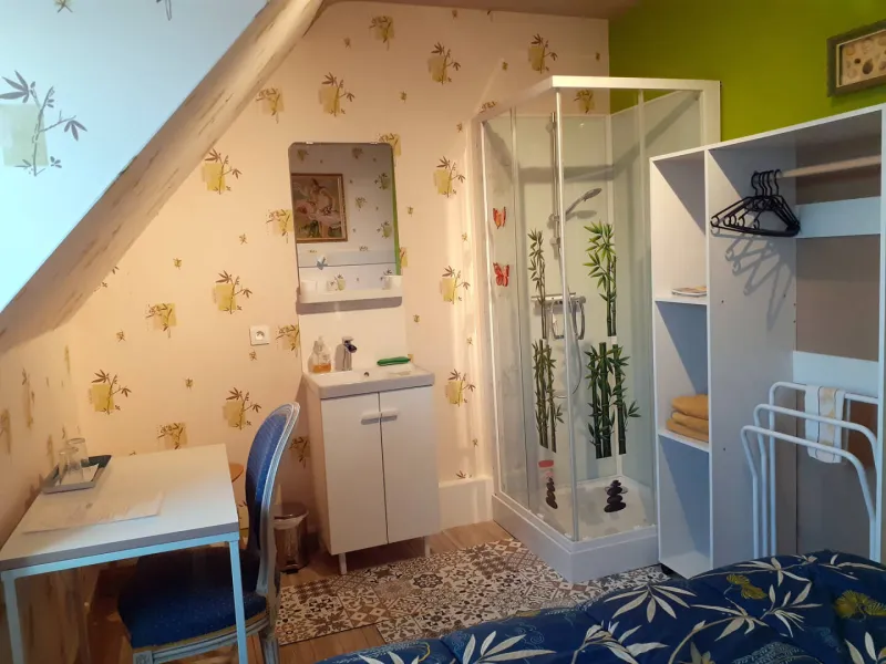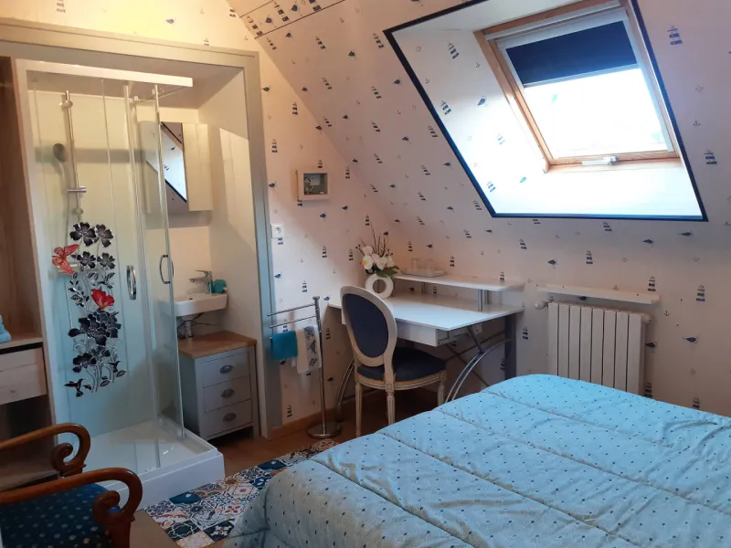 - Bedroom 5: 1 double bed 180 (90 €) separable into 2 single beds 90 (100 €) with private shower, washbasin, wc in the bedroom.