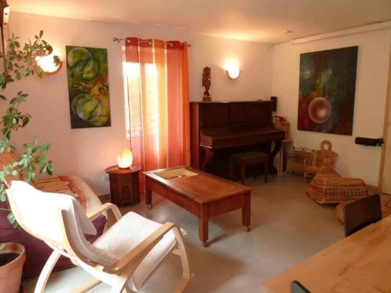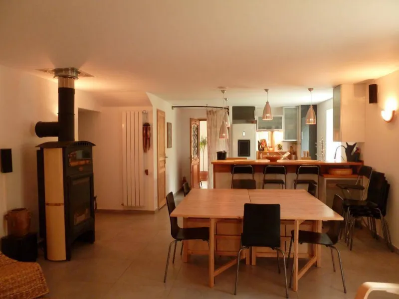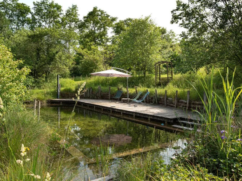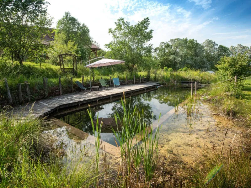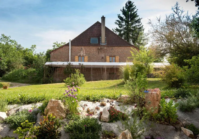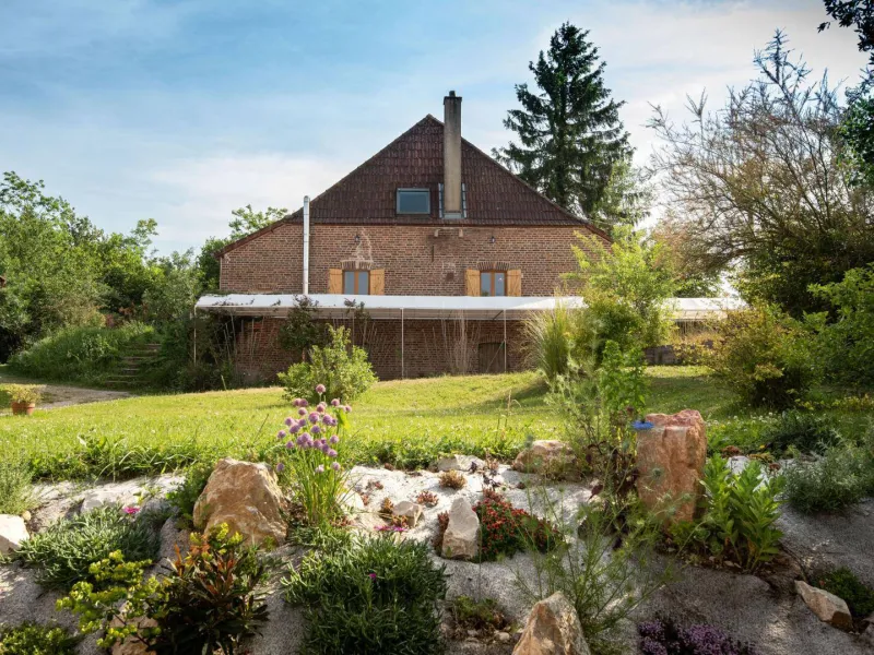 Yvan, expert in eco-construction and Ramatara, yoga teacher, welcome you in an authentic 1882 country house, carefully renovated in a global ecological approach, on a vast natural domain of 7 ha. Peaceful, typical little hamlet nestled in the heart of the Bresse countryside on the banks of the Seille, a remarkable ecosystem classified as a “Natura 2000 zone” (reserve of migratory birds, rare plant species, numerous fish including the famous catfish, animals and wildlife, etc.) . Nestled in the hollow of a pleasant, unspoiled setting of nature and greenery on the edge of meadows & forests, landscaped in a spirit of permaculture and "micro farm" without nuisance (donkey, pony, chickens, ducks, geese, beehives ...), the The property has a natural bathing area (shared), a wellness room with hammam & massage room (paid professional services) and a hiking trail in the forest. Warm country character, cozy and cozy. Zen and gentle atmosphere. Large exposed and shaded gravel terrace adjoining a private garden.Composition: Detached house next to another building (including wellness room, yoga room and reception) and the owners' house (total independence without vis-à-vis). Wireless. Solar central heating + wood stove. Ground floor: living room-kitchen-lounge (TV / video projector, piano), 2 bedrooms (double bed 140x190cm / 2 single beds 90x200cm) including 1 with private multi-jet hammam shower, bathroom (multi-jet shower ), Separate toilet. 1st floor: second living room-kitchen (dining area, PC office), 2 bedrooms (double bed 140x190cm / 4 single beds 90x200cm including 2 bunk beds), bathroom (balneotherapy bath, shower, WC). 2nd floor: mezzanine bedroom (2 single beds 90x200cm). Private terrace + small garden (ping-pong table). Parking + local bicycles + private electric car charging socket. Common land 7 ha. Natural swimming area (shared). Shops & services 11 km.