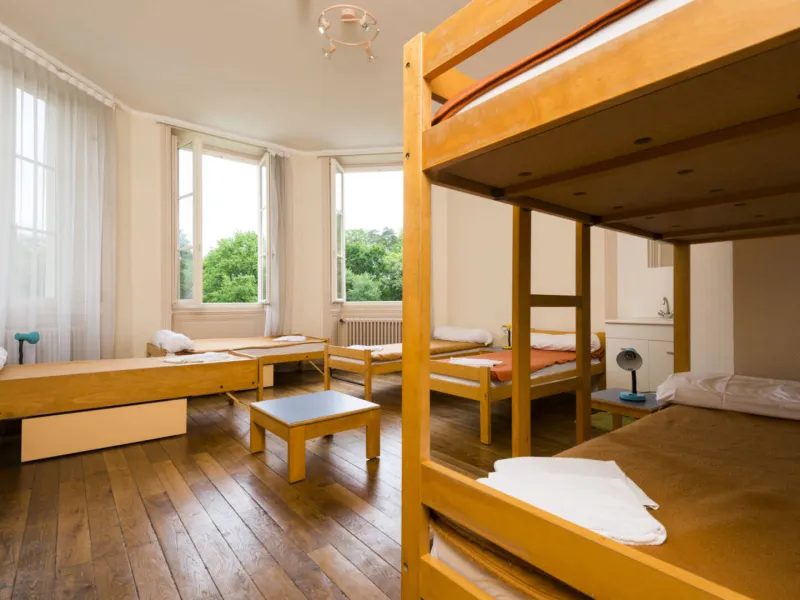 Situated 20 minutes from Nantes city centre, Château de la Plinguetière welcomes a wide variety of groups all year round (sports groups, school groups, senior citizens, adapted breaks, seminars, associations, etc.).Set in 8 hectares of wooded parkland, we offer accommodation in chalets for 2 to 6 people, as well as group rooms in the château and in the Oiseaux building. We have a total capacity of 200 beds.