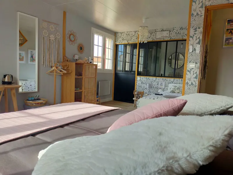 Whether you are sporty, nature lovers or simply looking for rest, we will be happy to welcome you in our house.We have 2 rooms, upstairs, overlooking the garden. We can accommodate 4 adults and 2 children (One room is equipped for children). A cot is available upon request.