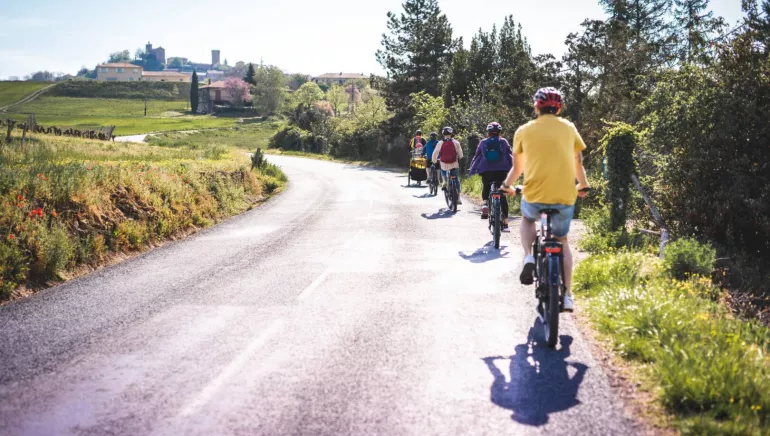 Nicknamed "the little Tuscany", the Beaujolais region offers a concentration of landscapes, history and gastronomy. In the heart of the golden stone villages, Vélo Via Dorées invites you to discover the richness of our heritage with your family or friends. Come and take a deep breath of fresh air less than 40 minutes from Lyon. We are at your disposal to advise you on the sites not to be missed, the cellars to be tasted without forgetting the restaurants to refresh you.