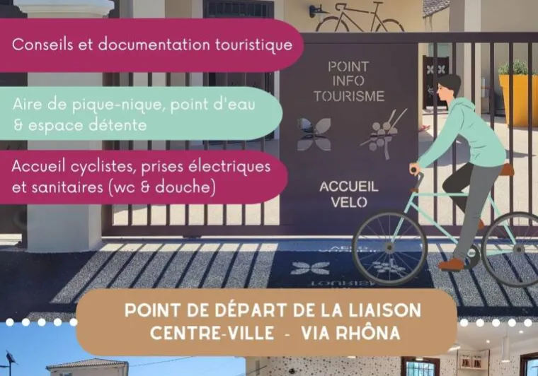 The Mornas Tourist Information Office warmly welcomes you, offers you advice during your stay and provides you with tourist documents, a water fountain, a battery charging station for electric bicycles (Bosch), luggage storage, toilets, bicycle racks, etc.Localisation